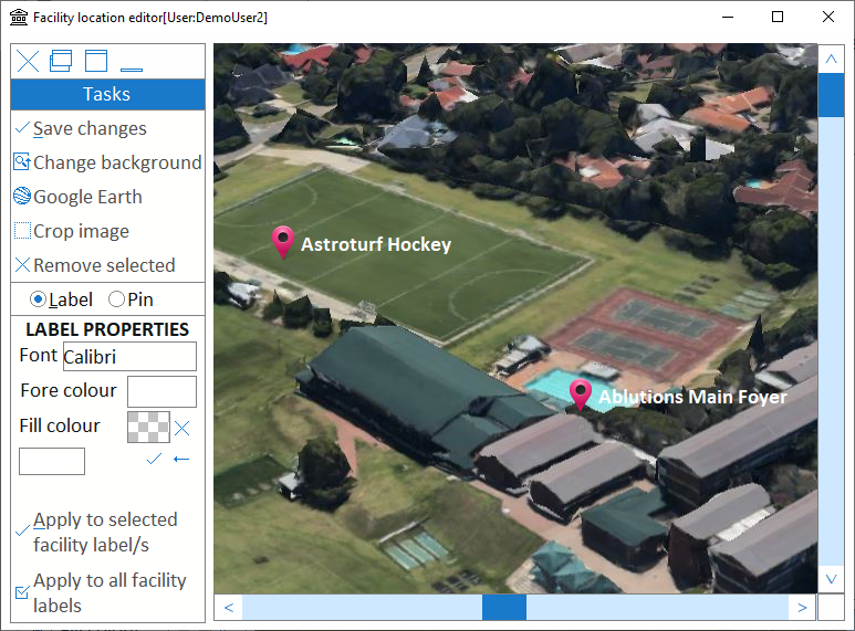 Add further facility location pins and labels by selecting the applicable facility in the main form and then selecting the Location option alongside the Description field.