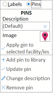 Apply pin to selected facility/ies. The pin image is applied to the active label selection (active labels' text is underlined).